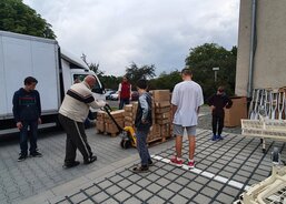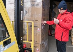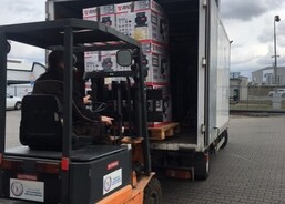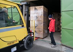 Světlo a teplo pro Ukrajinu - Fotografie z nakládky kamionu