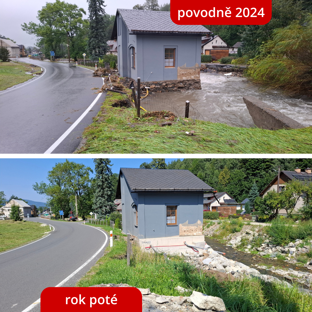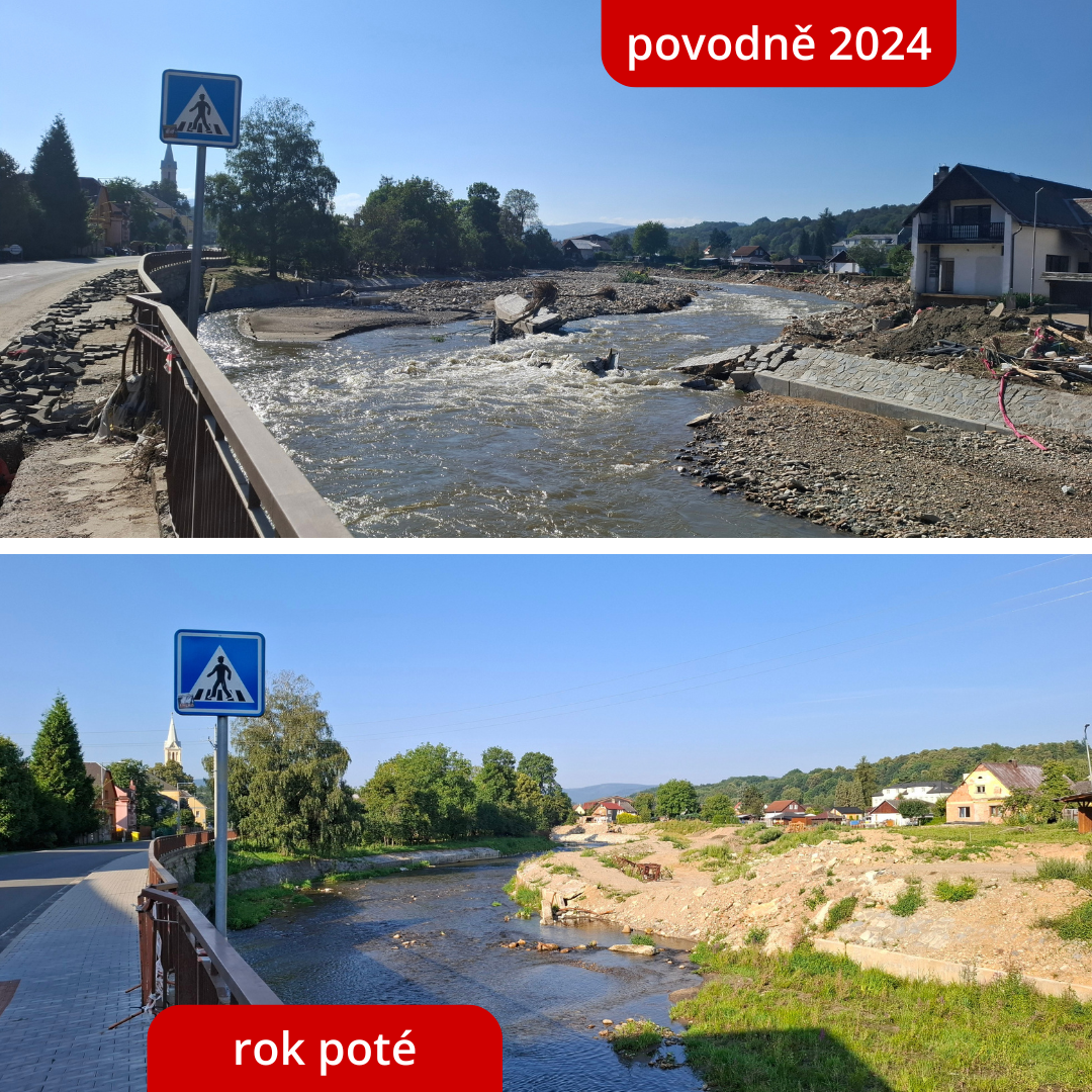 Robert Neugebauer o roce po povodních a životě v zasažené Bělé pod Pradědem. Robert Neugebauer pochází z Bělé pod Pradědem, jedné z nejvíce zasažených obcí během zářijových povodní 2024. V té době pracoval v oblasti charitních služeb pro migranty, od července 2025 se stal ředitelem Arcidiecézní charity Olomouc. Právě on je autorem většiny fotografií v této galerii, které ukazují proměnu míst v čase. K jednotlivým snímkům připojujeme také jeho osobní komentáře, vzpomínky, postřehy a zkušenosti z doby povodní i měsíců následujících.