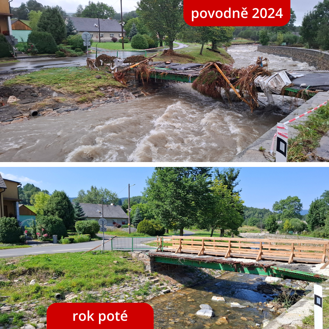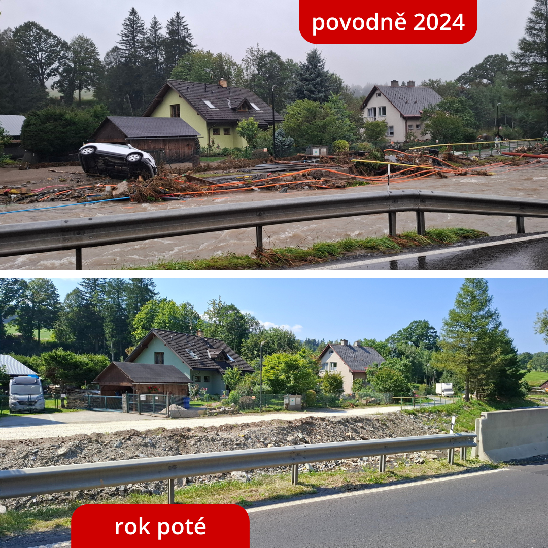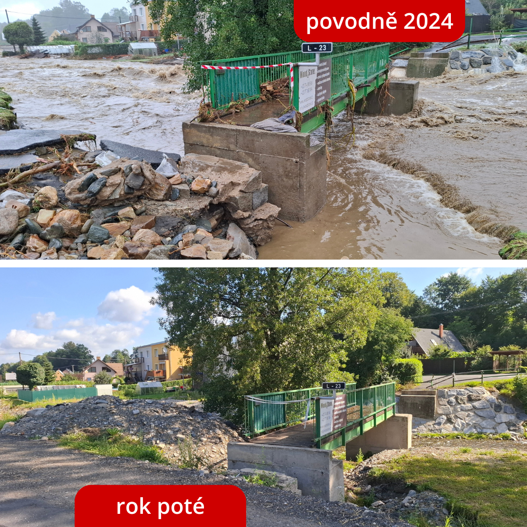 To, co již není tak veselé, je právě stav postižených obcí rok po povodni. To provizorium většinou trvá. Konečných oprav na infrastruktuře proběhlo zatím jen velmi málo. Chápu, že jde o velké a náročné projekty, které vyžadují stavební řízení a to u nás v republice není jednoduché. Ale je to přece výjimečná situace a už rok od události. Rekonstrukce oblasti se bohužel neděje tak rychle, jak bychom potřebovali. To je frustrující, protože to může působit na lidi tak, že se cítí zapomenutí a stále ohrožení.