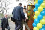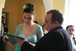 Projevy všeho druhu. Kromě biskupa se ujímají slova i šéf kolomyjské Charity Serhij Tryfjak či ředitel ACHO Václav Keprt, děvčata a další…