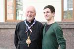 Arcibiskup a metropolita se skautem Honzou.