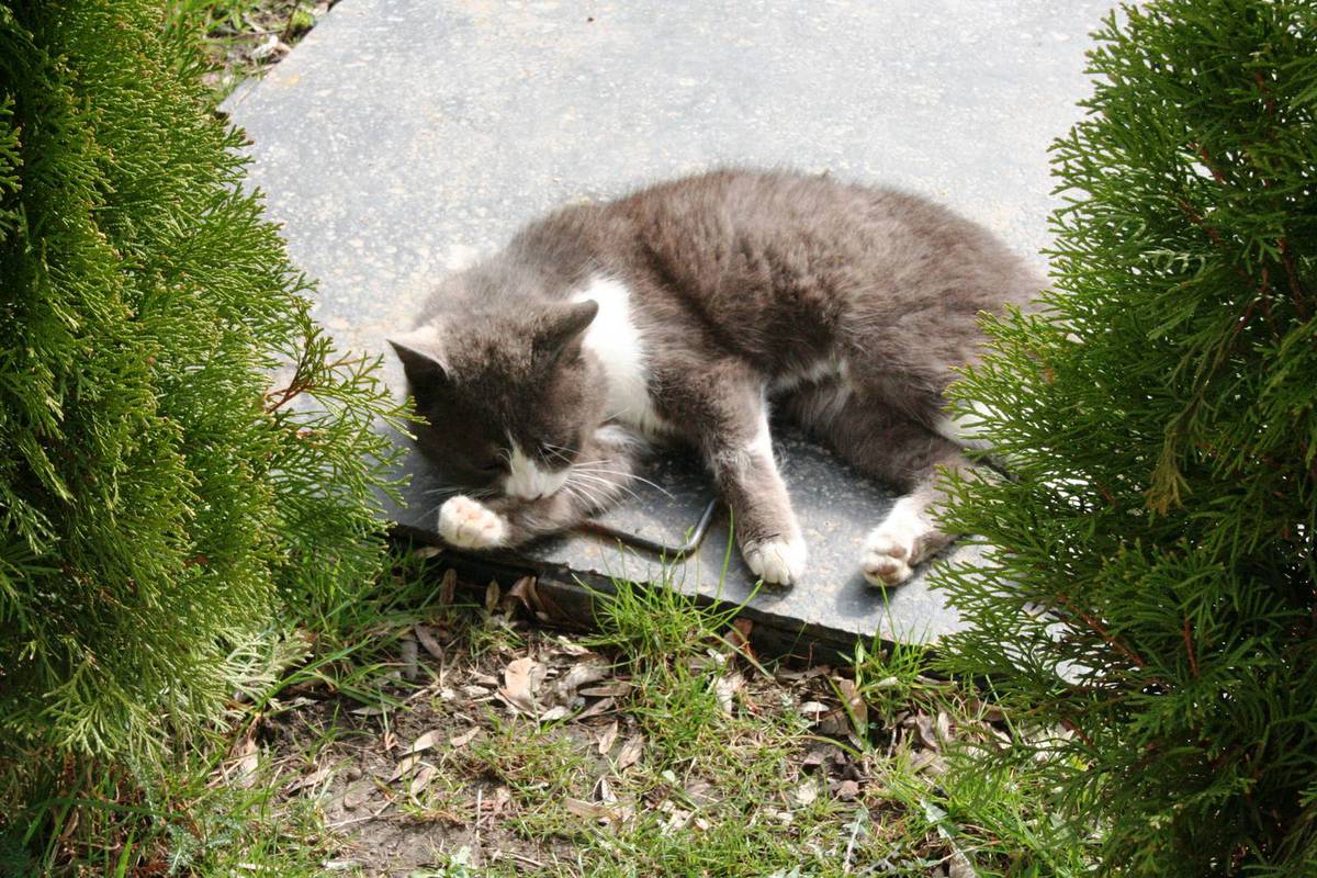 Kromě kočky areál a jeho obyvatele chrání ještě dva psy. Ten černý se jmenuje Bajkal.