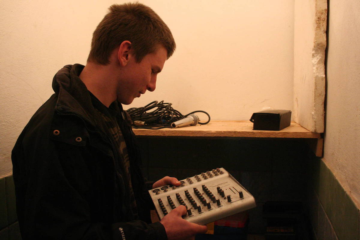 A toto je království šestnáctiletého Volodje. Sklad plný nářadí a věcí, které má opravit (mezi nimi mikrofon, mixážní pult, atd.). Zavedl nás také do místnůstky, kde všechny ty věci dává do kupy. Šikovné ručičky si poradí ještě s bicykly nebo rozbitými autosedadly. Klobouk dolů!