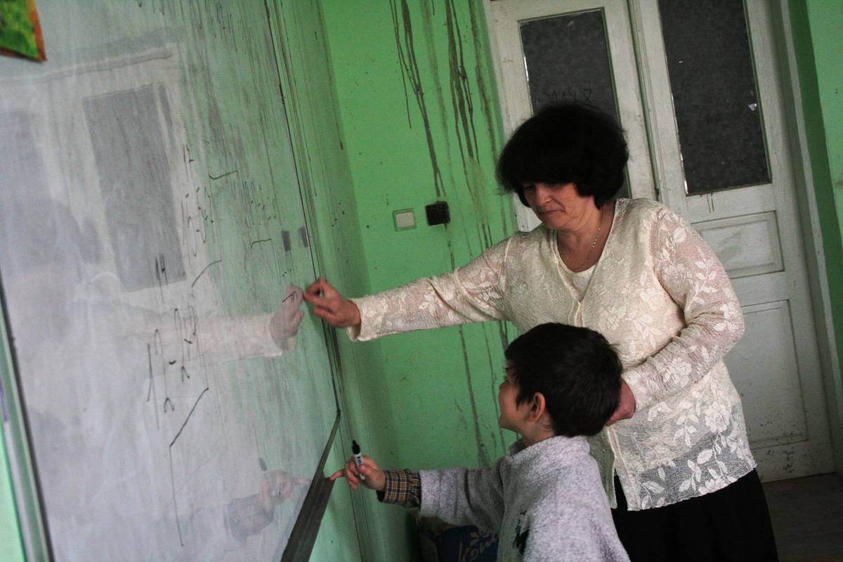 V zahradě stojí hned několik budov. Jednou z nich je škola. Ve spodní části se děti a mladí učí ve dvou třídách. Provizorně. Budovu totiž ovládly před časem opravy. Opravuje se i první patro. Vznikne tam laboratoř chemie a další třídy.