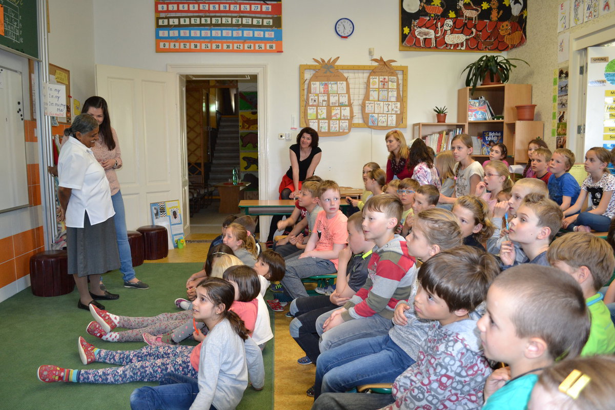 Droždínští očekávají od setkání s misionářkou z Haiti hodně. „Zajímá mě, jak se na Haiti žije, jak to tam vypadá a jací jsou tam lidé,“ těší se čtvrťačka Agátka. Dívenka vedle ní hned hlásí, že posílají dopis Idonelovi. „Psal nám o jakémsi autobusu tap tap a mě by zajímalo, co to znamená,“ dodává Anička. Idonel dřív chodíval do školy pěšky a cesta mu trvala jednu hodinu. Nyní si už může vzít autobus. A co to tedy znamená „tap tap“? „Jedná se o malou dodávku, na kterou mávnete a ona vám zastaví,“ vysvětluje sestra.